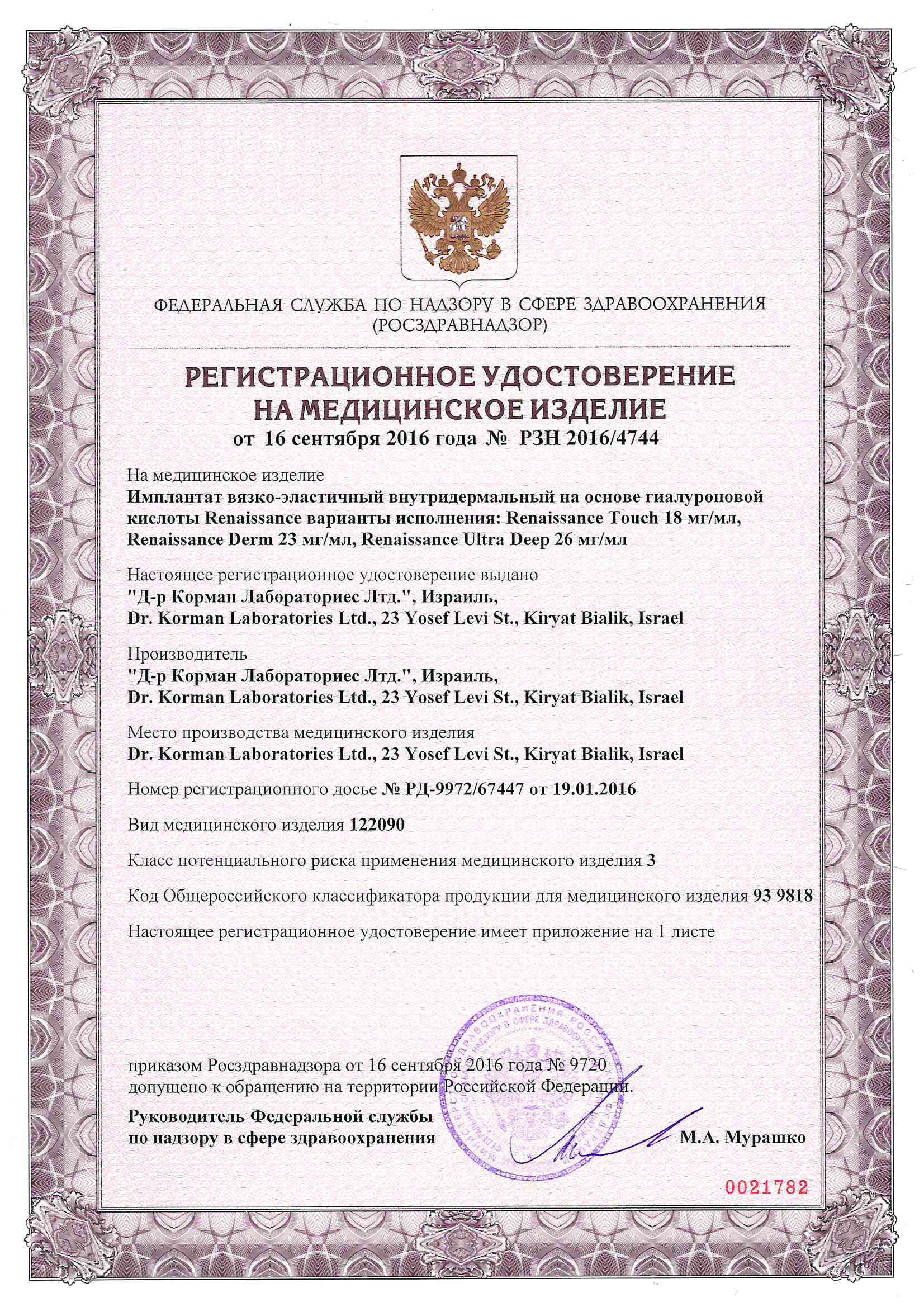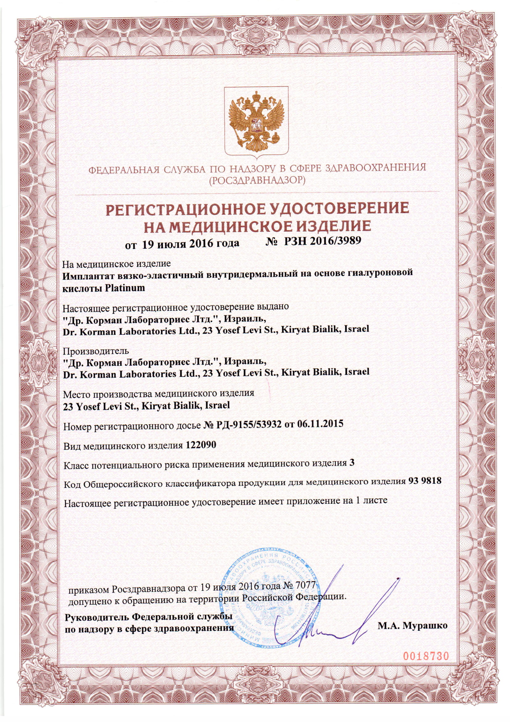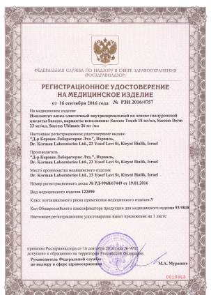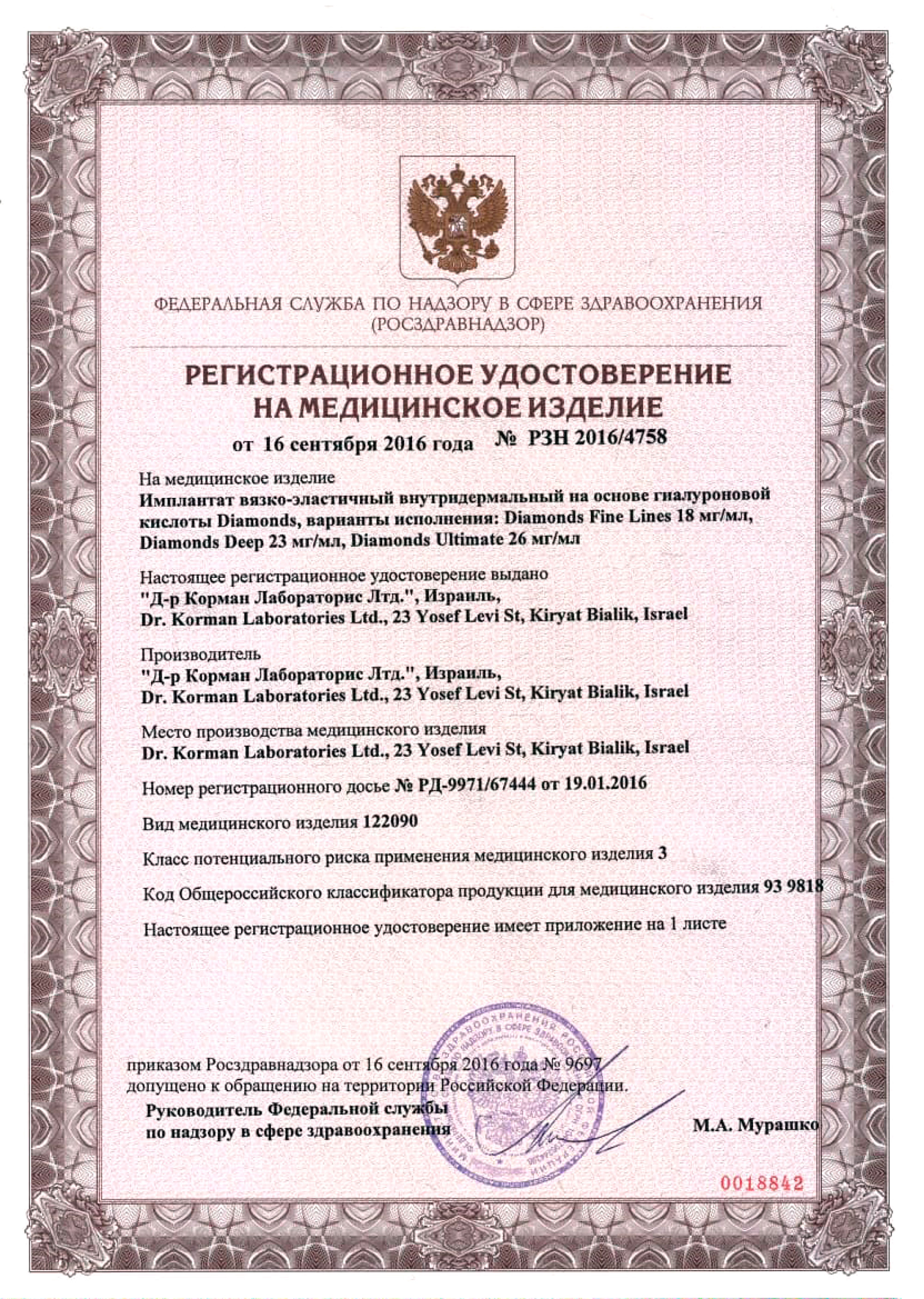 В 2013 году филлеры Dr.Korman Laboratories были сертифицированы в соответствие с директивой 93/42/ЕЕС, что гарантирует безопасность для здоровья человека.